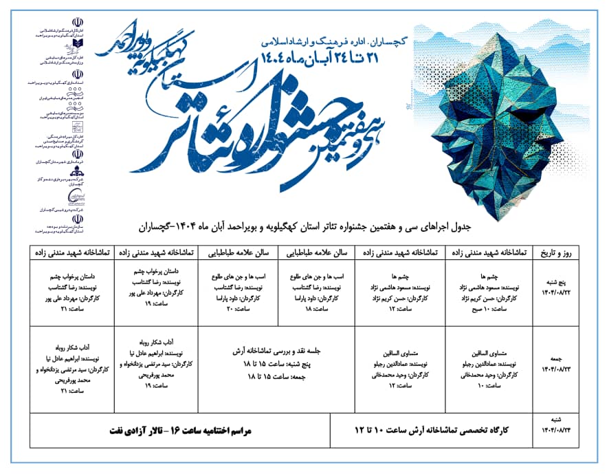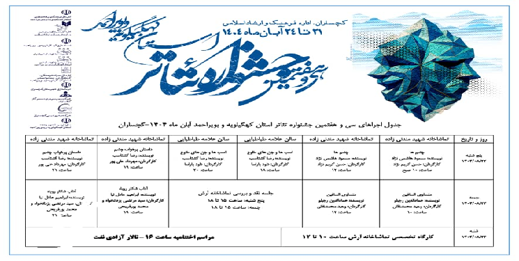 جدول اجراهای سی و هفتمین جشنواره تئاتر کهگیلویه و بویراحمد منتشر شد